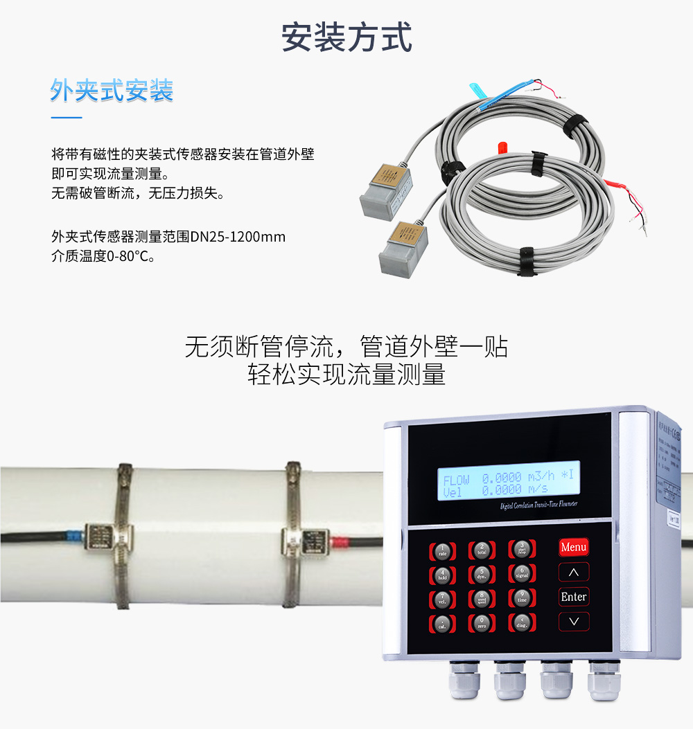 外夾式或者管段式超聲波流量儀表是以"速度差法"為原理,測量圓管內液體流量的儀表。它采用了先進的多脈沖技術、信號數字化處理技術及糾錯技術,使流量儀表更能適應工業現場的環境,計量更方便、經濟、準確。產品達到國內外先進水平,可廣泛應用于石油、化工、冶金、電力、給排水等領域。