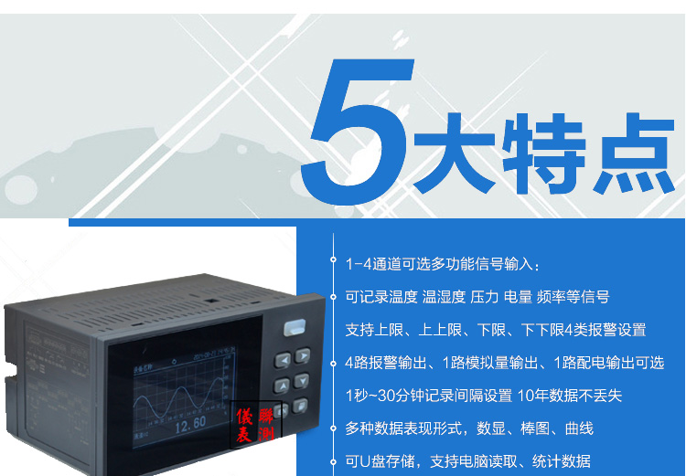 無紙記錄儀是將采集的數據/運算數據以時間為基軸記錄在儀器內部的存儲系統中,無消耗任何常用的記錄設施,如:紙張、筆墨。記錄在儀器內部的存儲數據,通過運算、模擬后顯示在液晶屏。常用顯示用液晶屏比較廣泛。在液晶屏屏幕上,可以顯示數字顯示、棒圖顯示、曲線顯示、報警列表等。無紙記錄儀采集的數據,常用的有:溫度、壓力、流量、液位、電壓、電流、濕度、頻率、振動、轉速等。