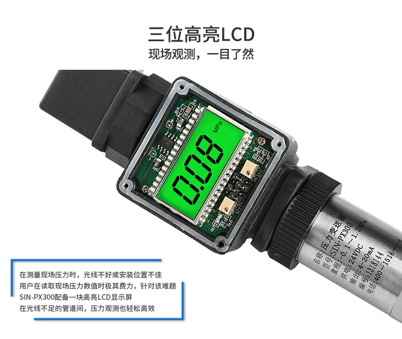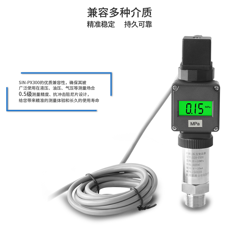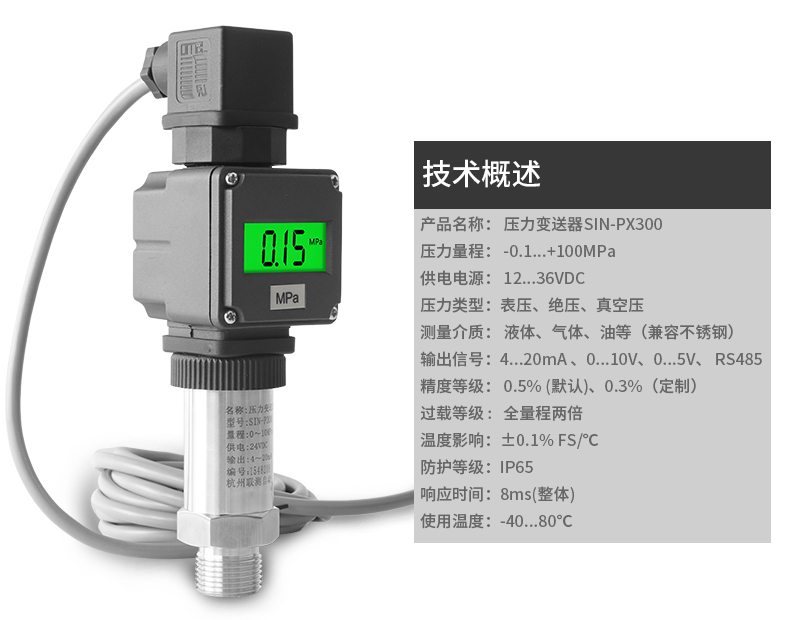 SIN-PX300型數(shù)顯壓力變送器采用無縫焊接結(jié)構(gòu),可批量化生產(chǎn),經(jīng)濟、可靠,具有良好的適應(yīng)性,可應(yīng)用于各種復(fù)雜的環(huán)境,該產(chǎn)品輸出形式多樣,壓力接口可提供定制,滿足您的使用需求。同時數(shù)顯壓力變送器帶有現(xiàn)場顯示功能,能夠更加直觀的顯示現(xiàn)場的壓力波動情況。廣泛應(yīng)用于工業(yè)自動化設(shè)備配套以及石油、化工、冶金、電力等控制領(lǐng)域。