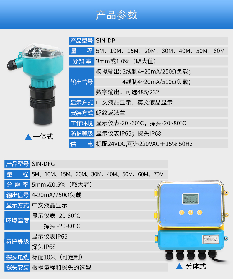 分體式超聲波液位計(jì)的原理是測(cè)量一個(gè)超聲波脈沖從發(fā)出到返回整個(gè)過(guò)程所需的時(shí)間。超聲波液位計(jì)垂直安裝在液體的表面,它向液面發(fā)出一個(gè)超聲波脈沖,經(jīng)過(guò)一段時(shí)間,超聲波液位計(jì)的傳感器接收到從液面反射回的信號(hào),信號(hào)經(jīng)過(guò)變送器電路的選擇和處理,根據(jù)超聲波液位計(jì)發(fā)出和接收超聲波的時(shí)間差,計(jì)算出液面到傳感器的距離。分體式超聲波液位計(jì)廣泛用于罐體、水池、水庫(kù)的液位和體積測(cè)量,也可用于明渠的流量測(cè)量。
